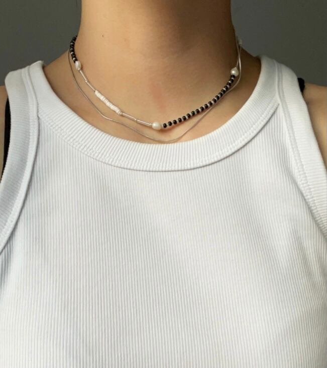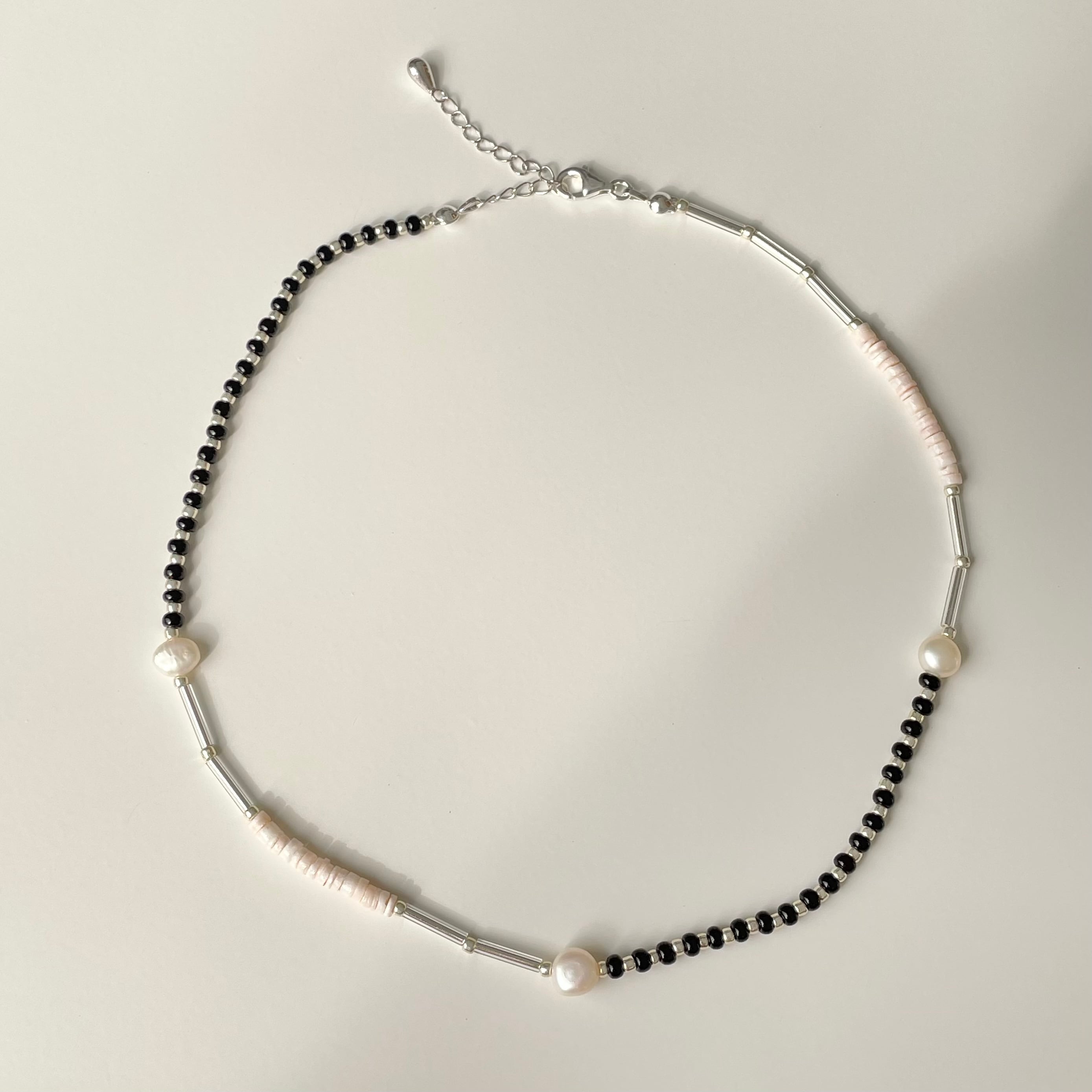淡水パール、シェルビーズを用いたネックレスです。